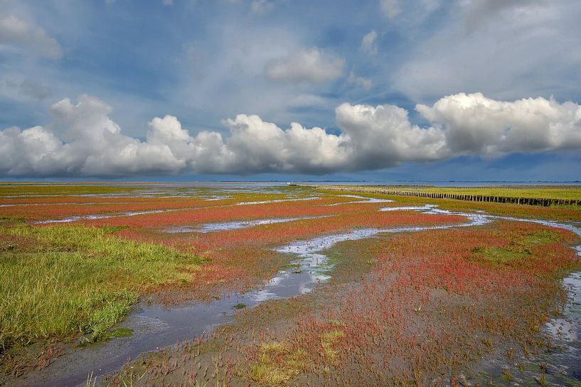 Prés salés avec salicorne en fleur ou Salicornia europaea sur la presqu'île d'Eiderstedt près de Sankt Peter-Ording,Mer du Nord,Nordfriesland,Schleswig-Holstein,Parc national de la mer des Wadden,Allemagne