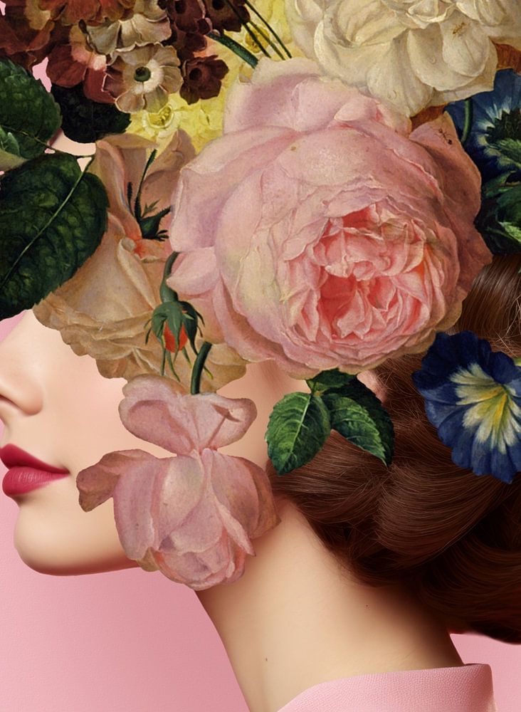 Beaucoup, beaucoup de rose dans ce portrait de femme gai, estival et rétro très improbable.