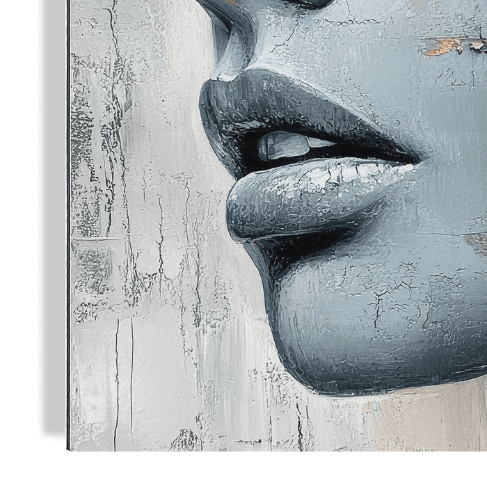 Cette œuvre d'art impressionnante combine l'esthétique d'un portrait moderne avec la texture dynamique de la peinture abstraite. Ce qui frappe, ce sont les feuilles d'or qui s'étendent sur le visage et l'arrière-plan. Ces accents dorés rompent la palette de couleurs monochromes et confèrent à l'œuvre d'art une note à la fois luxueuse et…