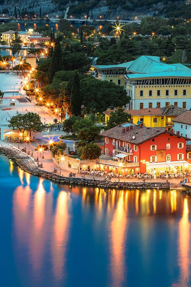 Promenade de Torbole la nuit. Sur le lac de Garde en Italie