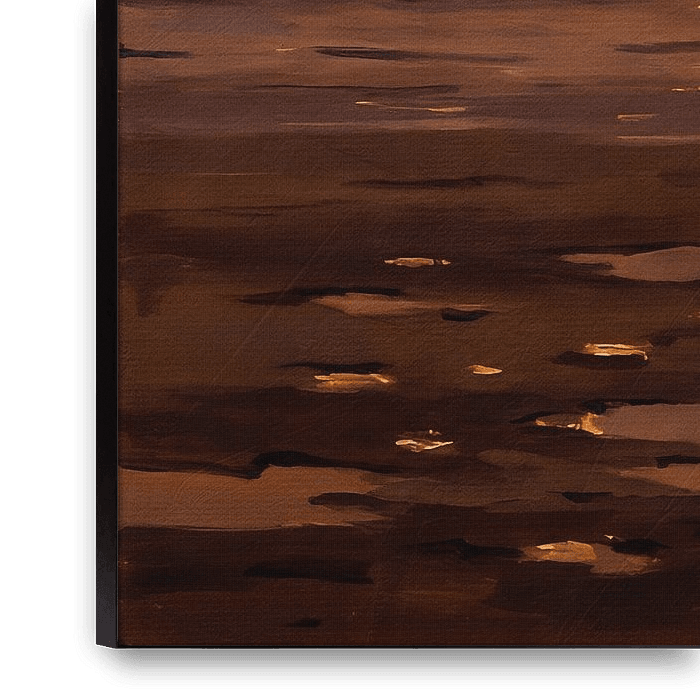 Cette peinture capture un moment fugace d'introspection et de solitude, où la nature et l'humanité s'entremêlent dans une harmonie tranquille. En tant qu'artiste, j'ai cherché à évoquer le calme profond qui accompagne le crépuscule, un moment où le monde semble s'arrêter et où le ciel se transforme en une toile aux teintes flamboyantes.…