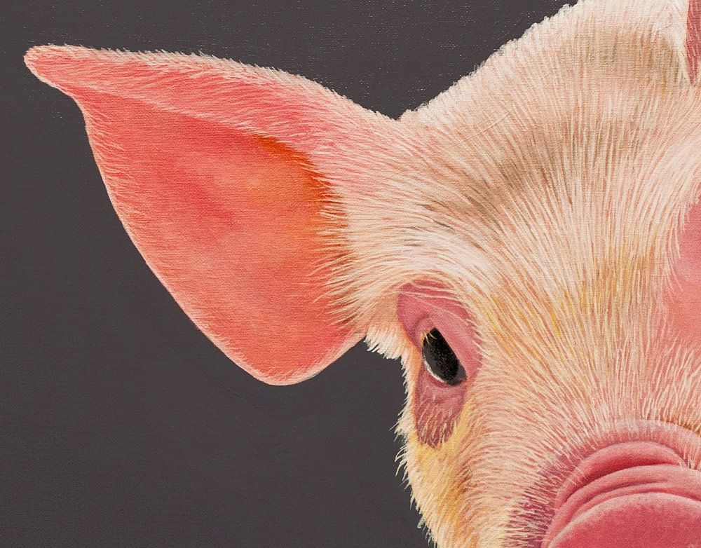 Un mignon petit cochon regarde l'observateur avec curiosité. Qui peut penser à un rôti de porc ou à un pulled pork en le voyant ?