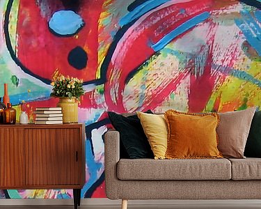 Peinture aux couleurs expressives. L'émotion dans des couleurs vives et des lignes variées. Étonnement et choc.