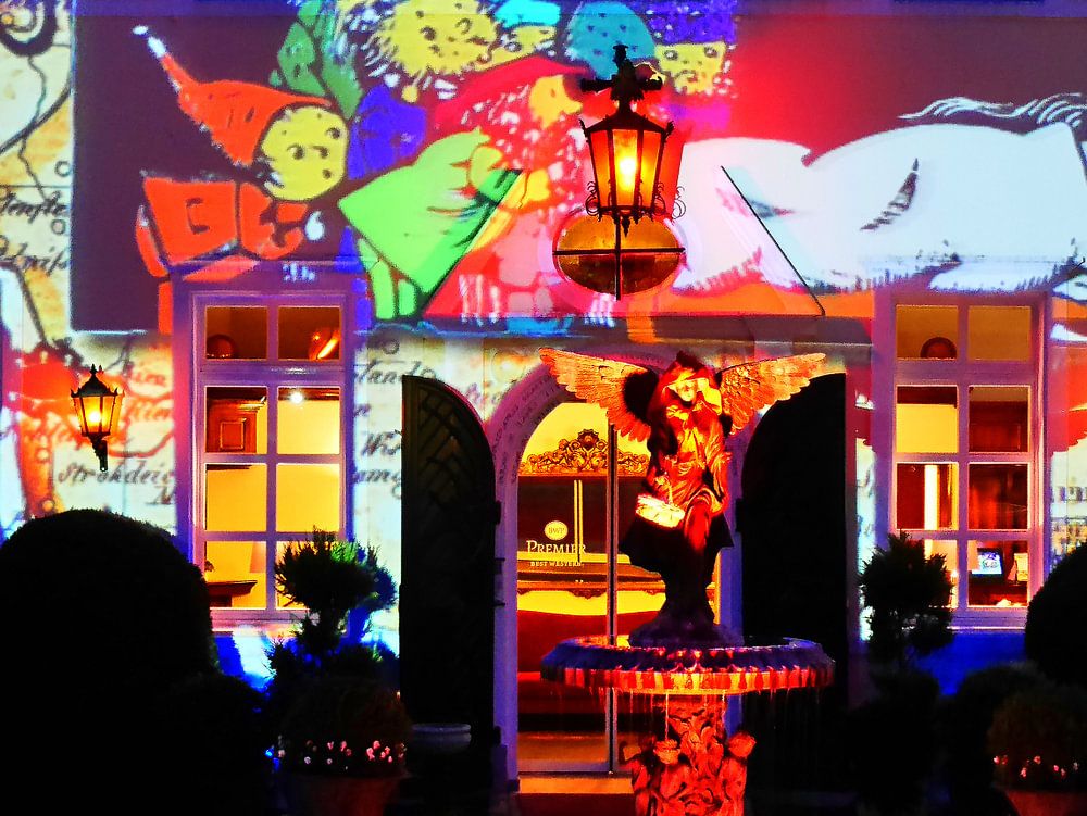 dans la vieille ville de Recklinghausen lors de l’événement "Recklinghausen s’allume " 2019 " l’hétel Engelsburg