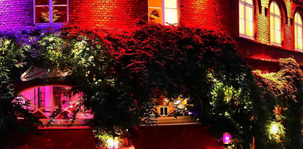 Photo panoramique dans la vieille ville de Recklinghausen lors de l'événement "Recklinghausen s'allume" 2019 à la brasserie de la maison Boente