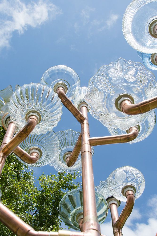 regenmeter gemaakt van koper buizen en glazen schalen