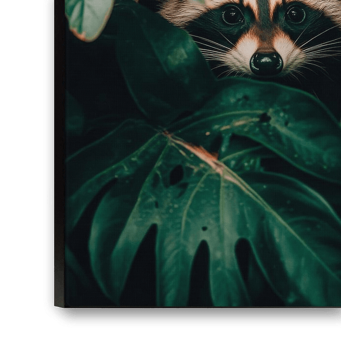 Achetez cette photo Raton laveur dans le feuillage par Poster Art Shop sur toile, aluminium, ArtFrame ou photographie (encadrée), impression d'art en haute qualité et tout format.
