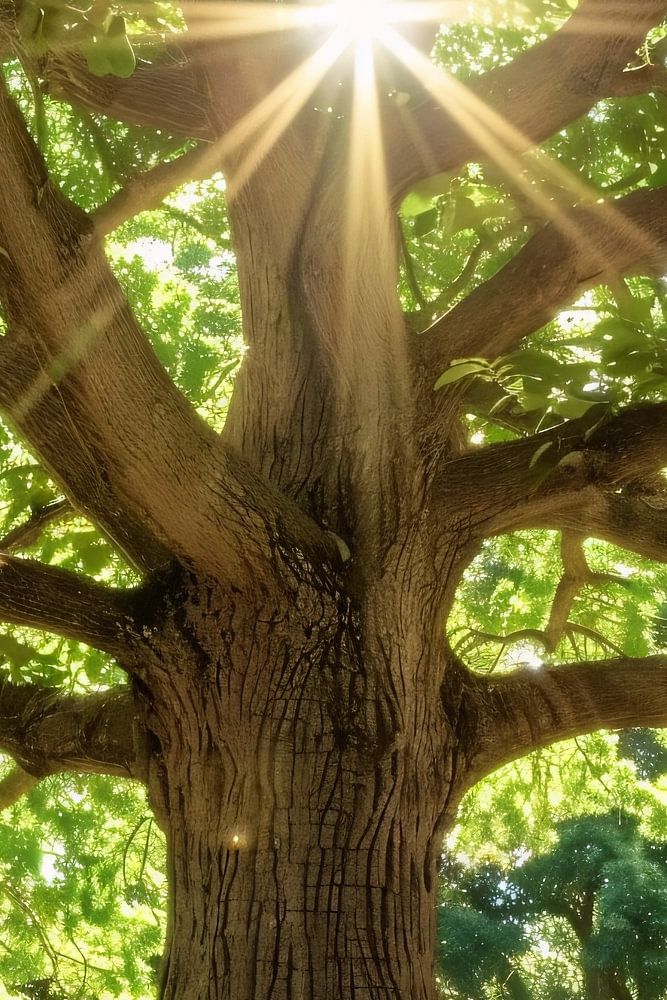A propos de "Rayons de soleil à travers un arbre majestueux"