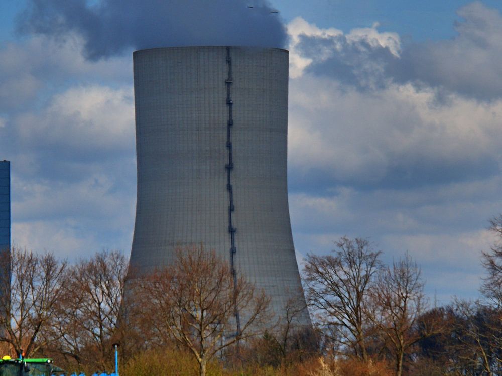 Fermier au travail à Datteln. En arrière-plan, la centrale électrique au charbon Datteln 4