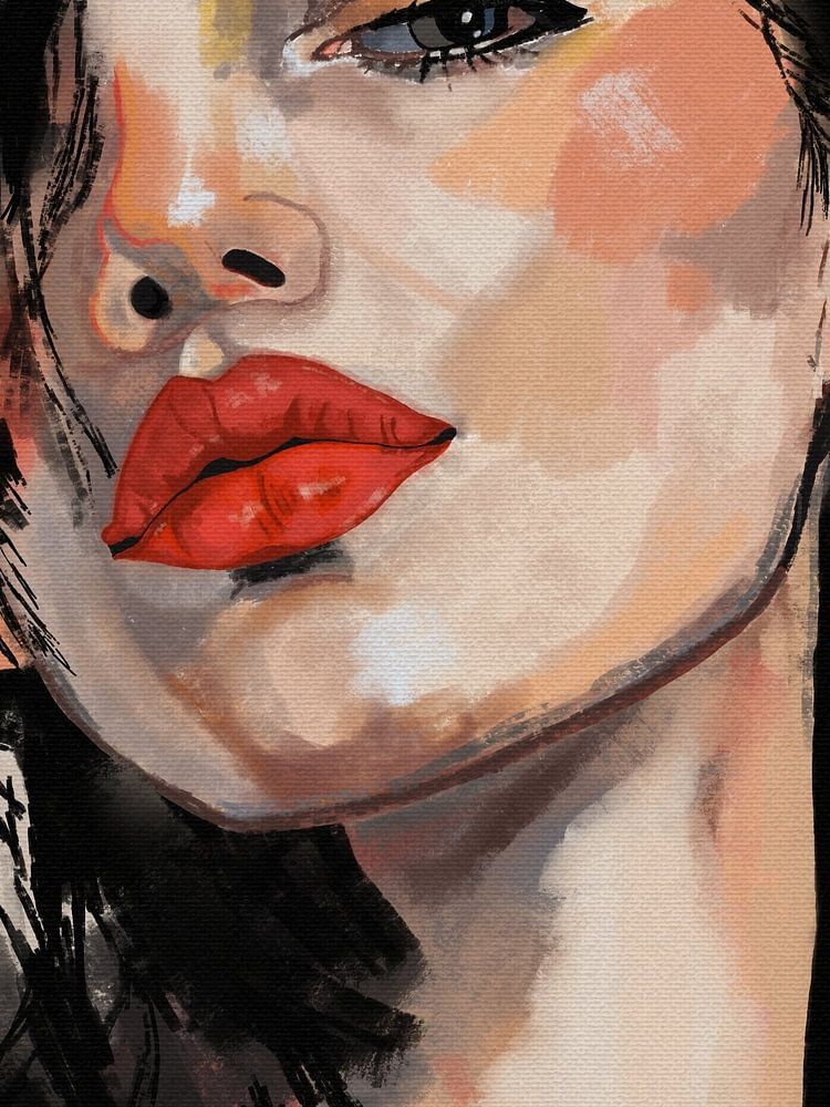 Red Velvet Gaze Laissez-vous captiver par la force d'un regard avec "Red Velvet Gaze". Ce portrait de femme saisissant est un chef-d'œuvre de contraste et d'émotion. Au centre, les lèvres d'un rouge intense agissent comme un point focal ardent sur des tons de peau doux et chauds. La femme regarde le spectateur droit dans les yeux avec…
