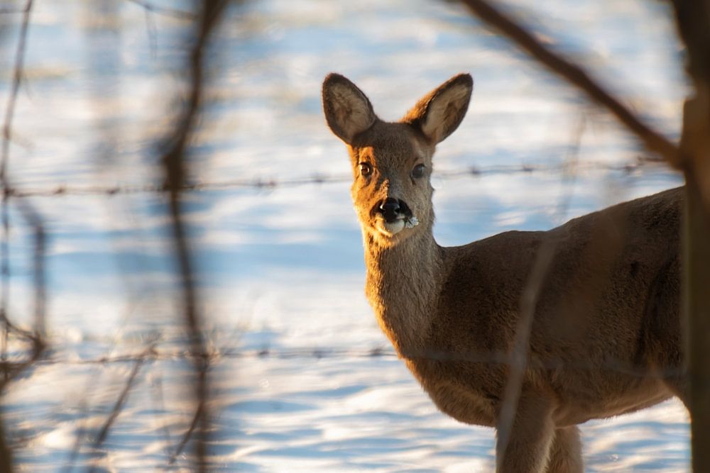 Au milieu d'un hiver rigoureux, on peut encore trouver de la nourriture sous le vent de la lisière de la forêt.