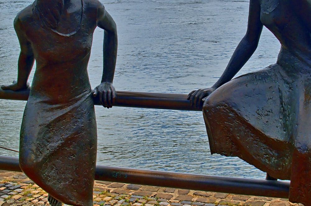 Bronzestatuen auf der Rheinpromenade in Rees am Niederrhein