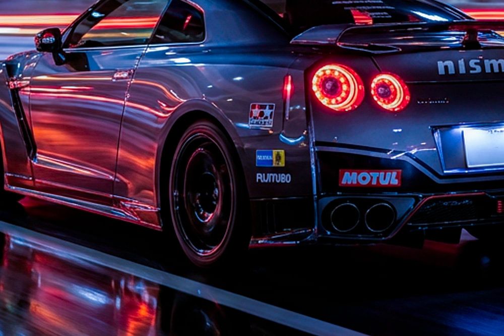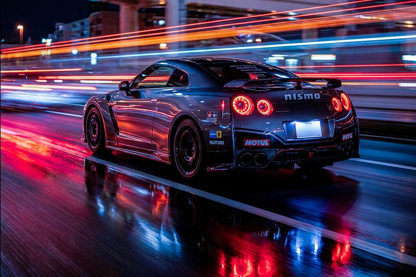 Une Nissan GTR Nismo par une journée pluvieuse à Yokohama, au Japon, crée de magnifiques reflets tout autour.