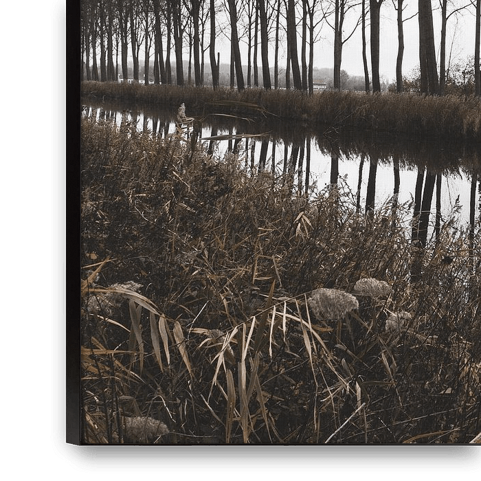 Le canal de Damme, en Flandre occidentale, capture la beauté tranquille d'une voie d'eau bordée d'arbres, où le ciel rencontre l'eau dans un reflet parfait. La légère brume ajoute une qualité éthérée à la scène, créant un paysage serein et captivant. Avec une belle palette tamisée de bruns terreux, c'est un paysage flamand parfait à…