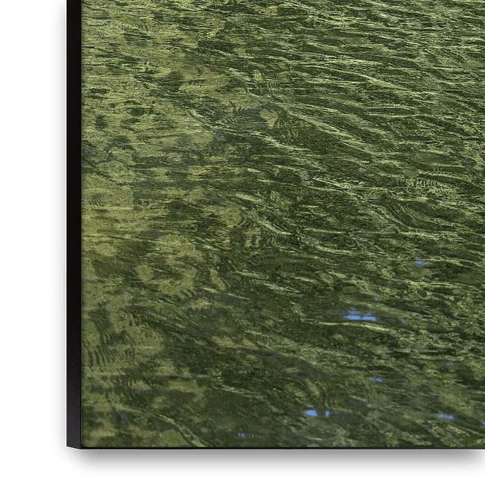 Achetez cette œuvre d'art abstraite Reflet vert doré au bord du lac par Adriana Müller sur toile, aluminium, ArtFrame ou photographie (encadrée), impression d'art en haute qualité et tout format.