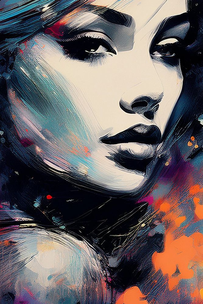 Portrait d'une jeune femme avec regard sur l'épaule que la peinture acrylique