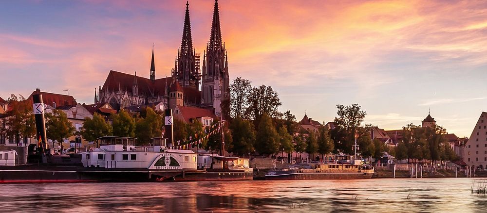 A propos de "Regensburg - panorama de l'horizon de la vieille ville au coucher du soleil"