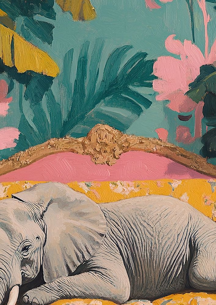 Un éléphant sur un canapé est pour moi une image pleine de contrastes - énorme et lourd dans un espace qui semble bien trop petit pour lui. Ce scénario absurde me met au défi, en tant qu'artiste, de jouer avec l'espace, l'échelle et les attentes. Il m'inspire à repenser des situations familières et à associer l'humour à la profondeur.