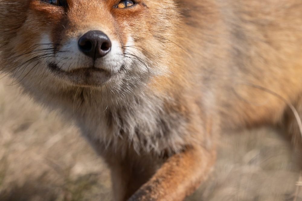 Superbe vue d'un renard se promenant dans la campagne. Il se promène tranquillement à la recherche de nourriture.
