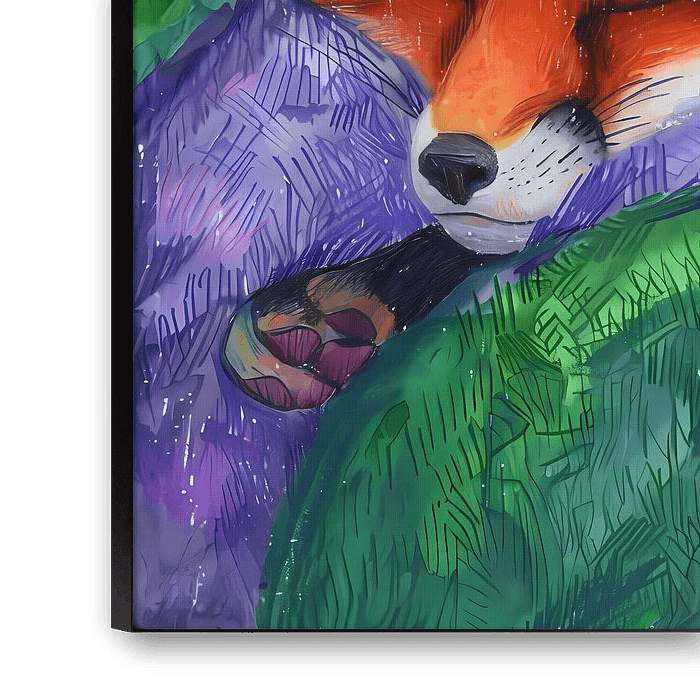 Cette magnifique œuvre d'art représente un renard dormant paisiblement dans une forêt verdoyante. Les couleurs vives et les coups de pinceau détaillés donnent vie au renard et créent une atmosphère sereine. Parfait pour une chambre ou un bureau, ce dessin apporte une touche de nature et de tranquillité à n'importe quel espace. L'utilisation ludique des couleurs en fait un véritable accroche-regard. Que vous soyez un amoureux de la nature ou que vous cherchiez simplement quelque chose d'unique pour votre intérieur, cette peinture ne manquera pas d'impressionner. Ajoutez un peu de nature à votre intérieur avec cette magnifique image d'un renard endormi.