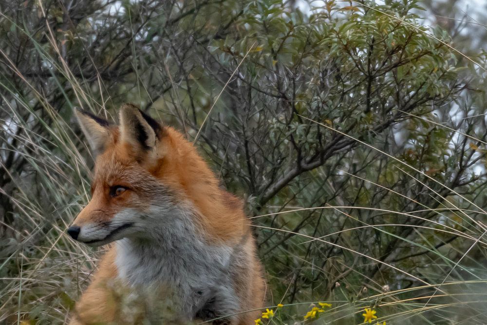 Le renard regarde la région de plus haut. Les dunes de l'approvisionnement en eau d'Amsterdam sont une zone merveilleusement variée avec de nombreux animaux. Le renard a donc une proie suffisante.