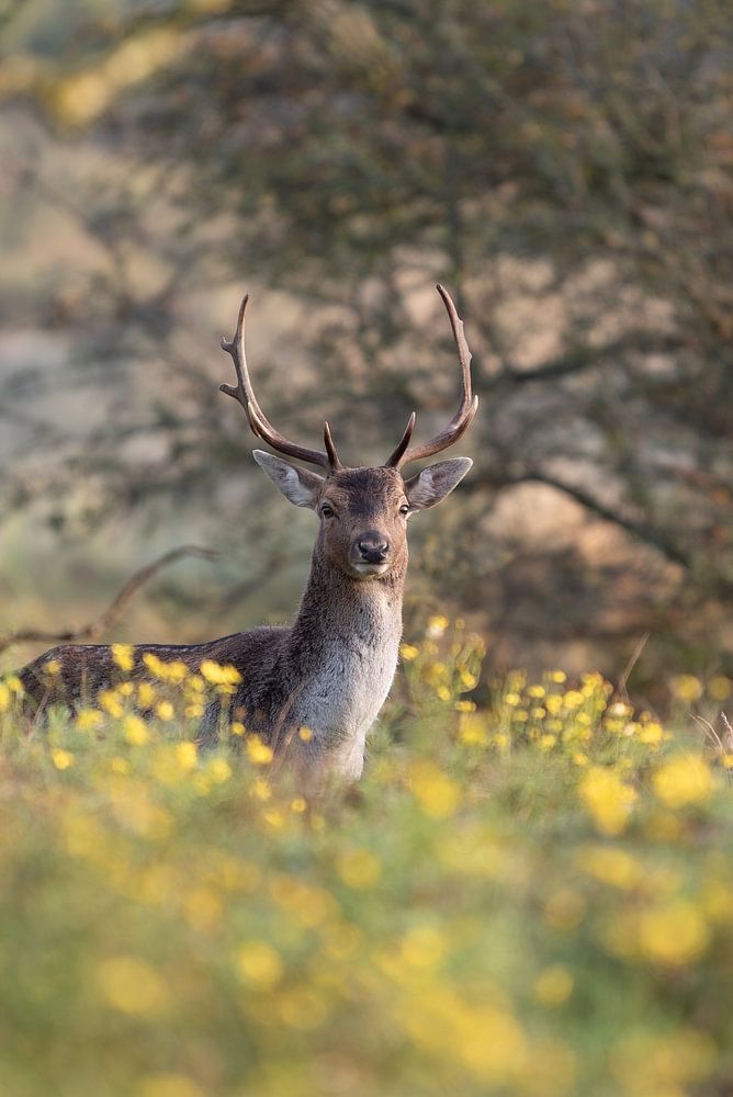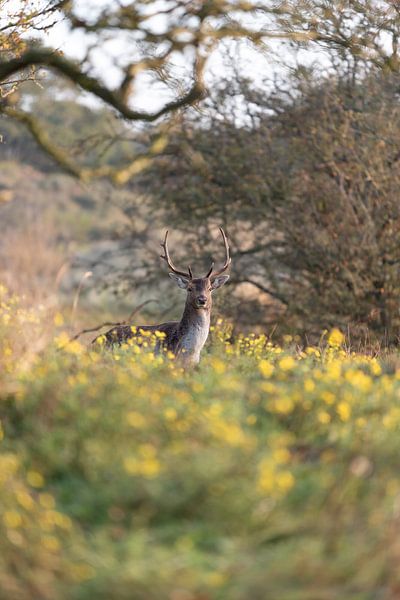 Il arrive parfois, dans la nature, que l'on vive un moment imprévisible. Cette photo a été prise lors d'une promenade tranquille dans les Waterleidingduinen d'Amsterdam, lorsque ce cerf est soudainement apparu parmi les fleurs jaunes et m'a regardé droit dans les yeux. L'instant d'un instant, le temps semblait s'être arrêté. Entre la…