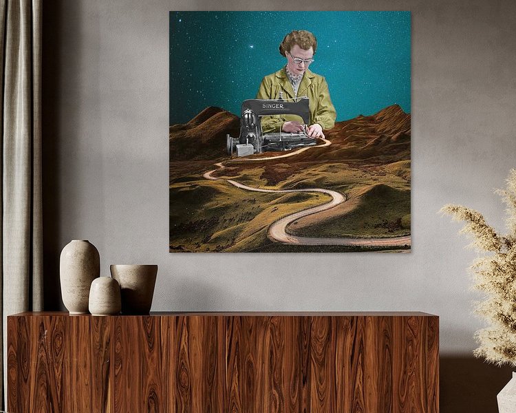 Un collage. J'ai vu une fissure dans ce paysage surréaliste et j'ai trouvé une photo vintage de quelqu'un qui pourrait réparer de cette façon en cousant les deux parties ensemble