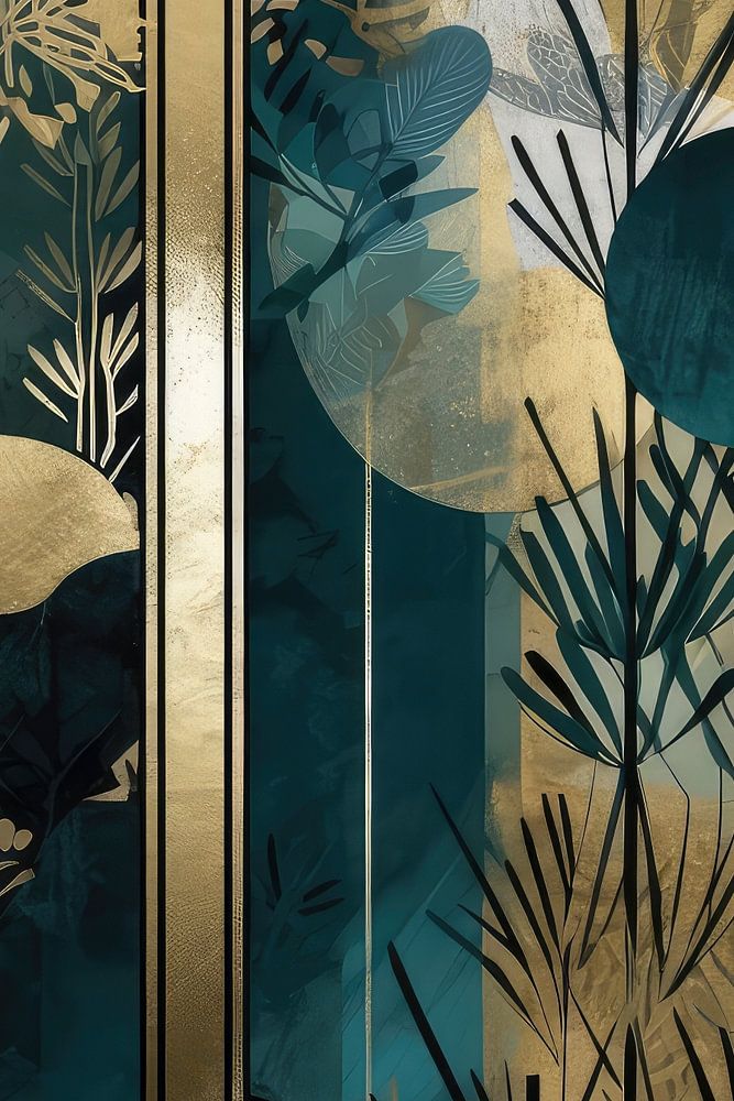 Achetez cette œuvre d'art abstraite Repos géométrique en vert et or par Digitale Schilderijen sur toile, aluminium, ArtFrame ou photographie (encadrée), impression d'art en haute qualité et tout format.