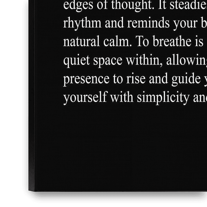 Ce poster typographique minimaliste montre *Breathe* comme un moment conscient de calme et de détente intérieure. La conception claire favorise la vigilance, la présence et l'équilibre émotionnel.