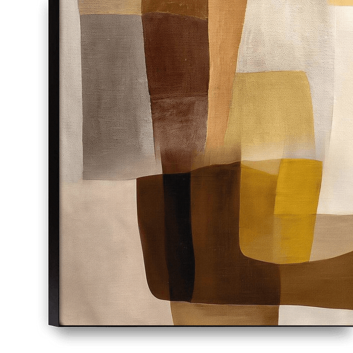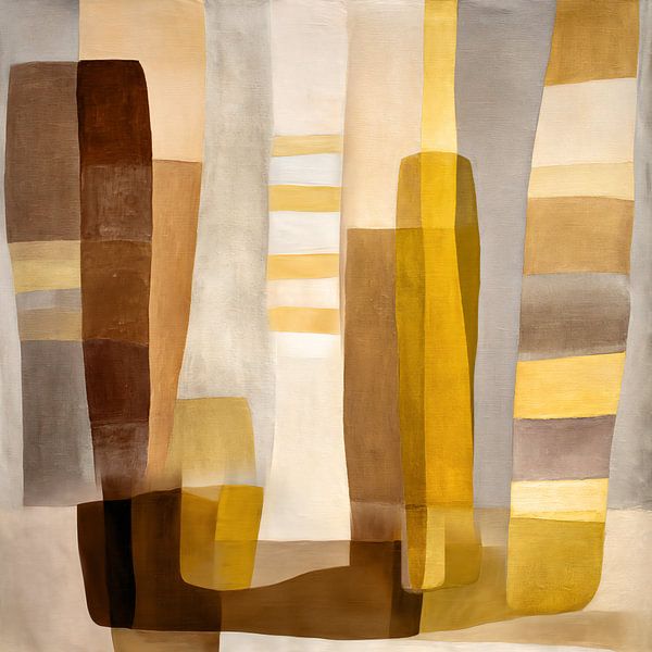 Une composition abstraite aux couleurs vives, avec des rayures et des tons chauds de brun et de jaune