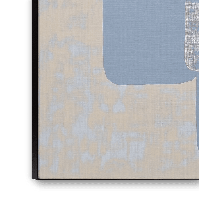 Peinture abstraite avec des tons gris-bleu et un fond taupe. Diverses textures et plans.