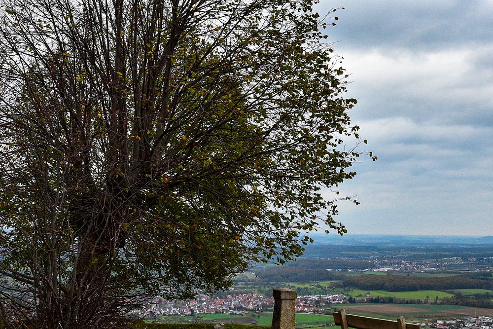 des arbres dénudés, des nuages bas, mordant sur la Teck. Une vue d'automne.