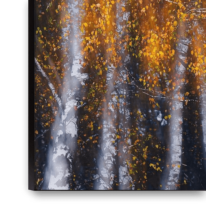 Photographie abstraite ou artistique d'une forêt de bouleaux en automne.