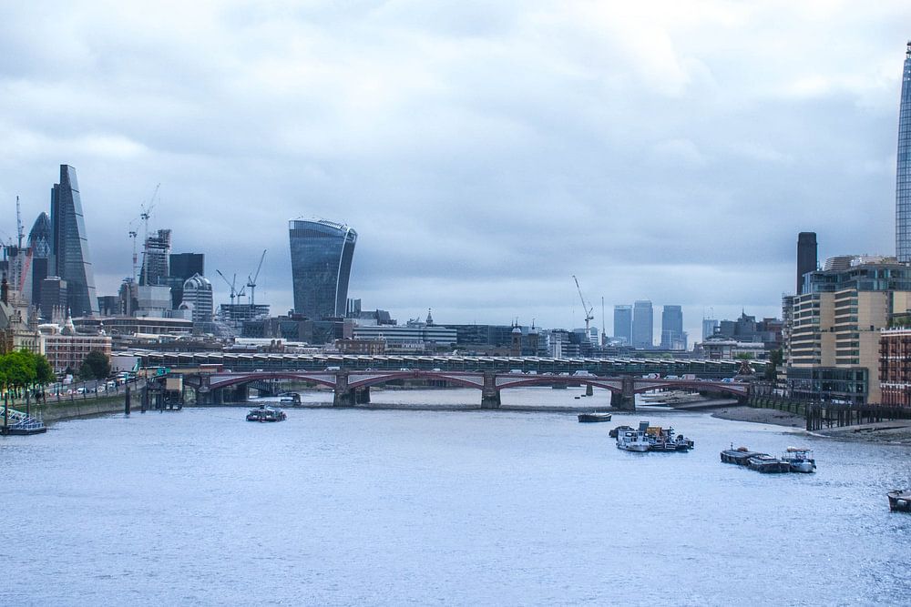 Mooie foto van de rivier Thames vanaf de Westminster Bridge op een bewolkte dag.