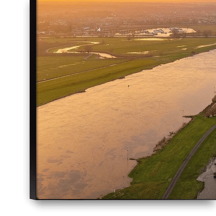 Achetez cette œuvre d'art de paysage Rivière IJssel avec des plaines inondables débordantes près de Zwolle pendant le coucher du soleil par Sjoerd van der Wal Photographie sur toile, aluminium, ArtFrame ou photographie (encadrée), impression d'art en haute qualité et tout format.