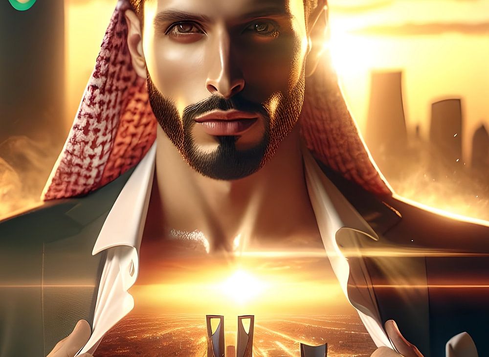 Riyad, mon amour. Homme saoudien typique avec la ville de Riyad sur la poitrine, concept