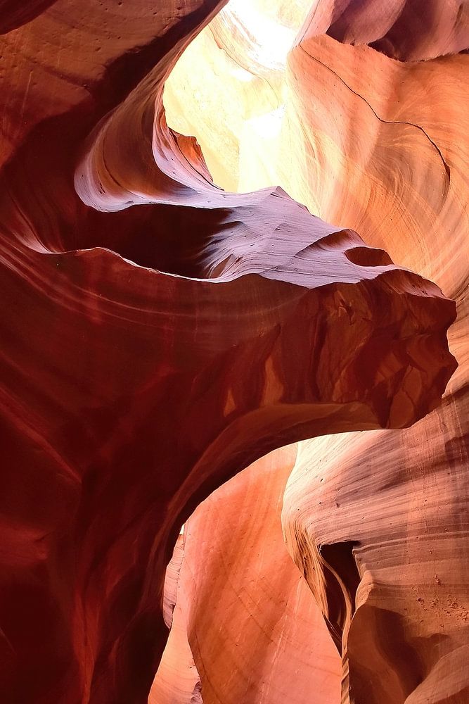 Certains rochers sont plus solides que d'autres dans le Upper Antelope Canyon, près de la ville de Page, en Arizona, aux États-Unis. Cela crée néanmoins des roches déchiquetées d'aspect fantastique.