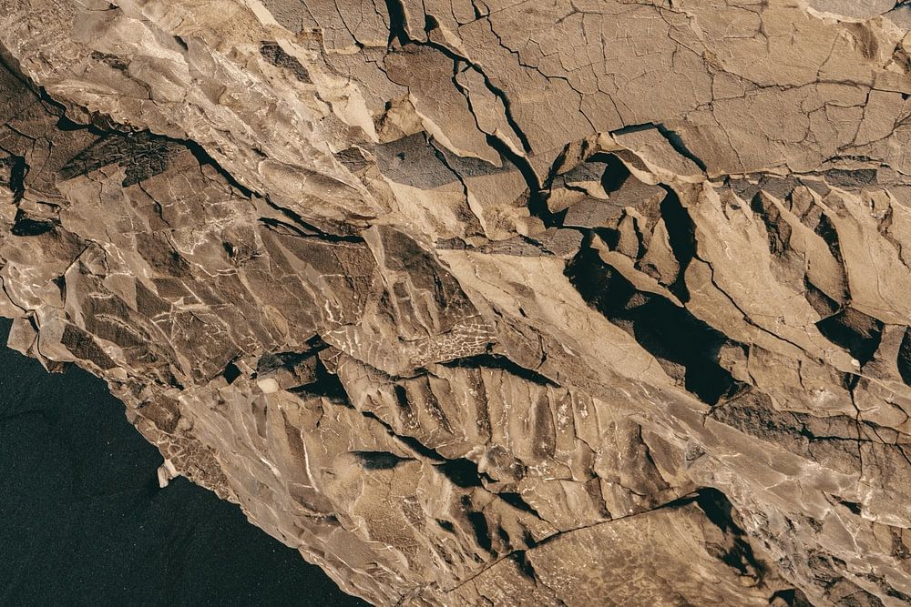 Qu'est-ce que ça donne ? Le sable d'une plage n'est pas toujours brun ! En Islande, on trouve du sable noir très fin, qui crée une image unique. La texture de la roche est bien mise en valeur sur le fond noir.