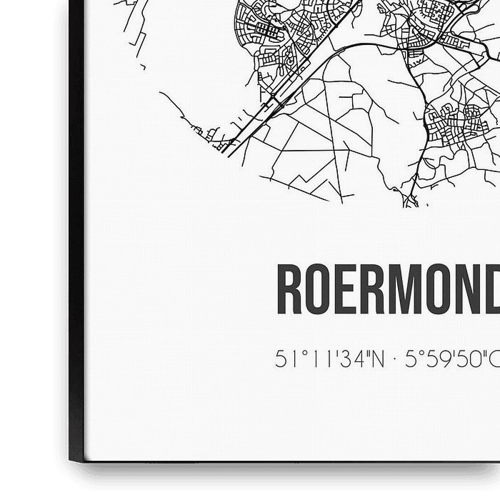 Achetez cette œuvre d'art abstraite Roermond (Limburg) | Carte | Noir et blanc par Affiches de lieux sur toile, aluminium, ArtFrame ou photographie (encadrée), impression d'art en haute qualité et tout format.