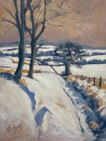 La neige est arrivée très tôt cette année. Une belle route de campagne enneigée dans le sud du Limbourg en direction de Diependal (Epen) avec vue sur le Vijlener Bos. Des reproductions de qualité ici au Werk aan de Muur. La peinture originale est en vente : www.briex.eu