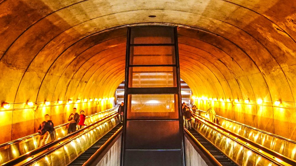 Foto van een roltrap in de metro van Washington DC.