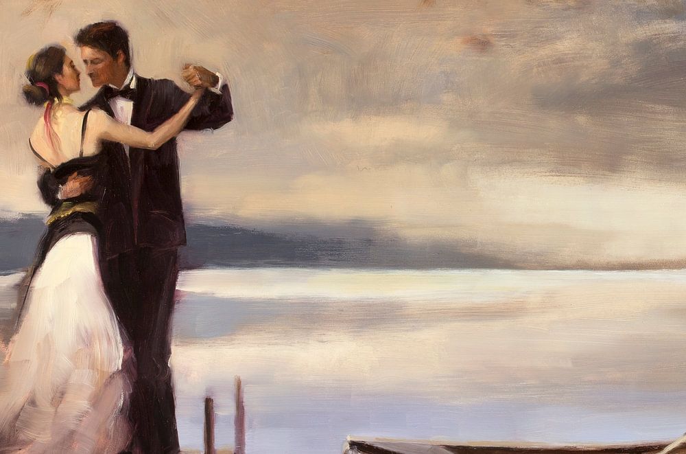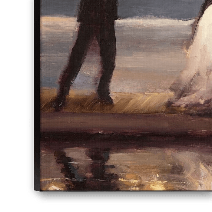 La romance est dans l'air, un mélange harmonieux d'amour et de joie alors que le couple se serre l'un contre l'autre dans une danse lente, tranquille et nocturne. Et tandis que le violoniste sur le côté joue sa musique, la véritable mélodie existe dans le cœur du couple. Est-ce leur première danse, leur dernière ? Ou s'agit-il d'une danse parmi tant d'autres, chacune précieuse, chacune unique et mémorable ? C'est à vous de compléter l'histoire, cher spectateur, car, comme dans toute œuvre d'art figurative, le peintre commence l'histoire, mais c'est le spectateur qui la complète.