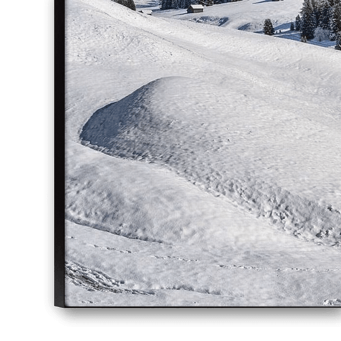 Achetez cette œuvre d'art de paysage Romantisme des cabanes sur l'Alpe de Siusi dans le Tyrol du Sud par Achim Thomae Photography sur toile, aluminium, ArtFrame ou photographie (encadrée), impression d'art en haute qualité et tout format.