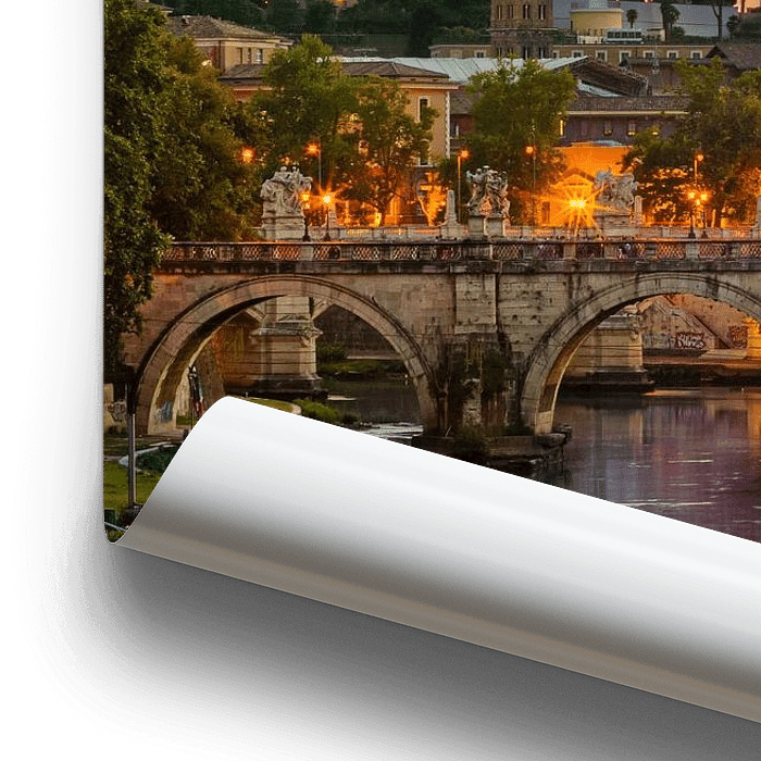 Rome, vue sur le Vatican et le pont des anges au coucher du soleil