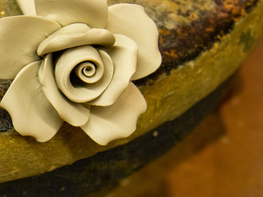 Keramische porseleinen roos, gemaakt in een keramiekfabriek in Stoke on Trent, Engeland.