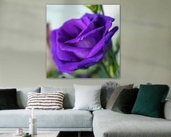 Une autre photo de ma rose violette (ou bleue ?) préférée. En pleine gloire cette fois. Remplie d'images et de l'attention qu'elle porte à elle-même. En raison de la découpe carrée, vous avez une œuvre séparée sur le mur.