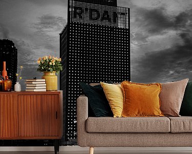 Les rambardes de la passerelle de la Wilhelminakade conduisent le regard vers l'avant et vers le bâtiment KPN, au pied du pont Erasmus. Cette photo a été prise le soir, lorsque la ville est plongée dans l'obscurité, mais que les bâtiments, comme celui-ci, éclairent la ligne d'horizon.