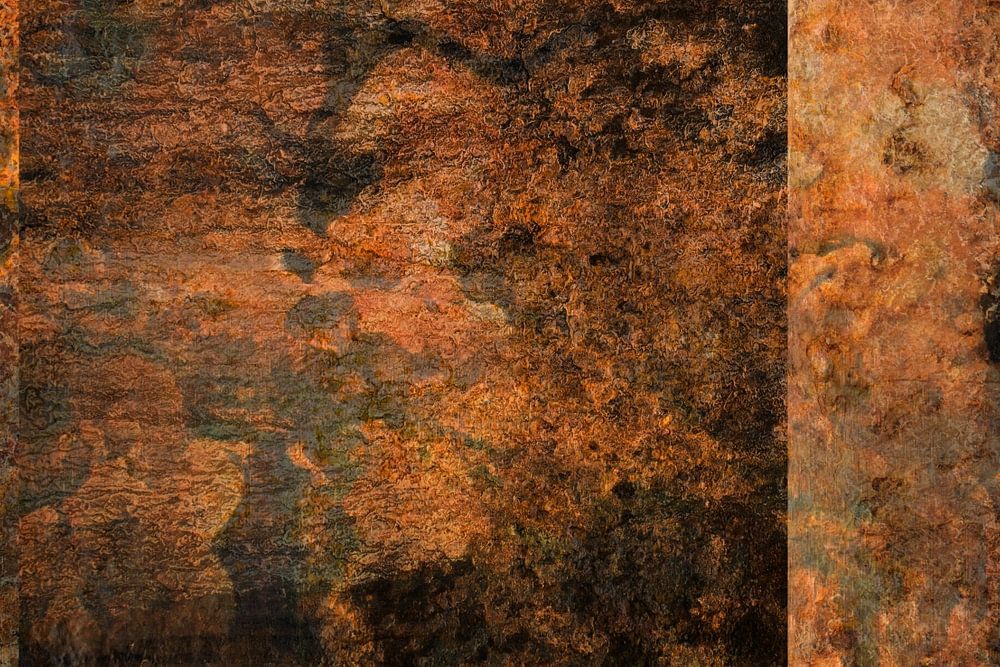En me promenant dans le port de Texel, je suis tombé sur un vieux bateau dont les structures de rouille coloraient joliment certaines parties. J'ai pris des photos de différentes parties et je les ai combinées en un panneau ludique.