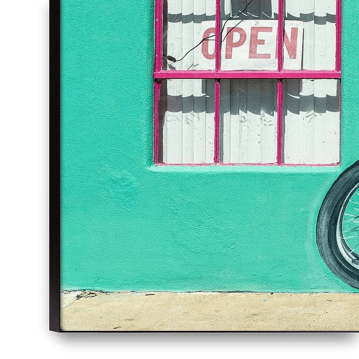 Lors de notre merveilleux tour d'Amérique, nous avons également emprunté la célèbre Route 66. C'est un plaisir de rouler le long des villes qui ont conservé leur style d'antan, avec les nombreux panneaux d'affichage américains, les néons et les nombreux restaurants, ou Diners. Les villes le long de la Route 66 sont certainement très colorées, c'est merveilleux à voir ! Nous avons beaucoup apprécié. Ici, à Kingsman, il y avait un restaurant entièrement dans le style des années 1950, avec une peinture murale colorée sur le mur extérieur d'une moto et d'une fille légèrement vêtue. Il fallait que je prenne une photo de l'image avec la publicité pour le restaurant de Mr D, les deux fenêtres et la belle peinture murale. J'aime beaucoup ce genre de photos ! Les couleurs sont vraiment superbes. C'est aussi une image joyeuse, car le soleil l'éclaire magnifiquement. Une vraie photo d'ambiance, presque une vraie peinture, à accrocher au mur pour s'imaginer dans l'Amérique des années 1950 ! Une telle photo convient à n'importe quel intérieur. Jetez également un coup d'œil à mes autres photos dans ma boutique, elles en valent vraiment la peine !