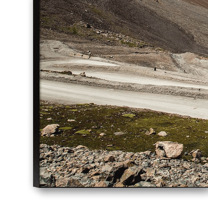 Achetez cette œuvre d'art de paysage Route de montagne au Kirghizstan par Julian Buijzen sur toile, aluminium, ArtFrame ou photographie (encadrée), impression d'art en haute qualité et tout format.